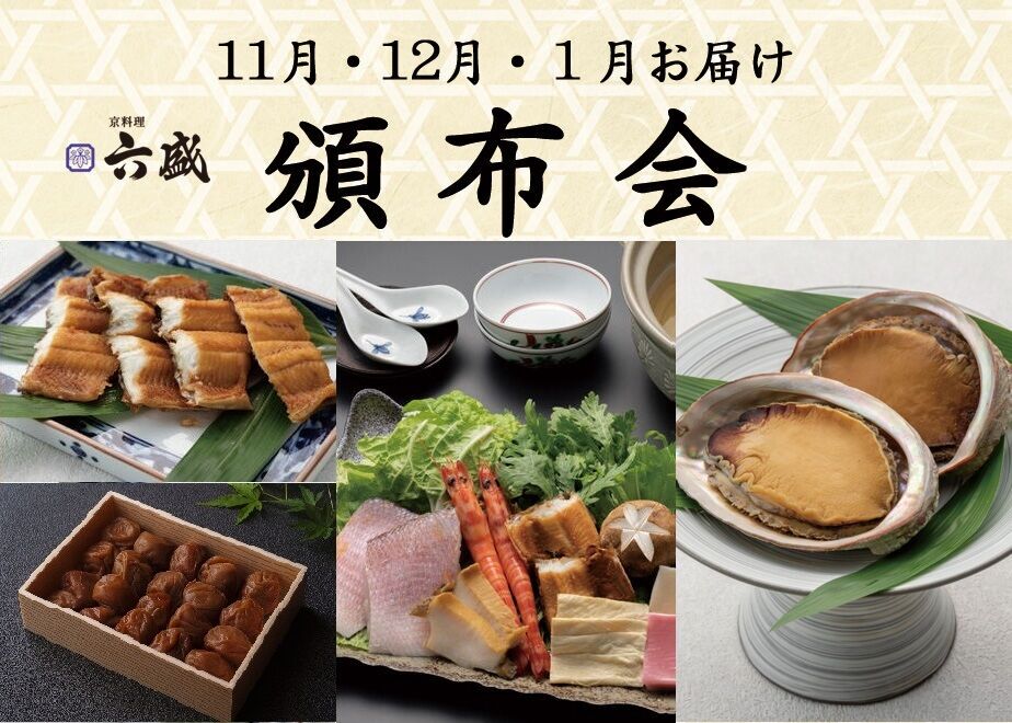六盛の厨房にて調理したお料理、六盛の味を、月に1度3ヶ月にわたってご自宅へお届けします(2人前)。